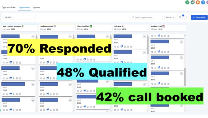 We set up AI conversations, SMS/email automations, and pipelines inside GHL. You choose the outcome you want to pay for (booked call, showed call, completed form, sale, etc.)..